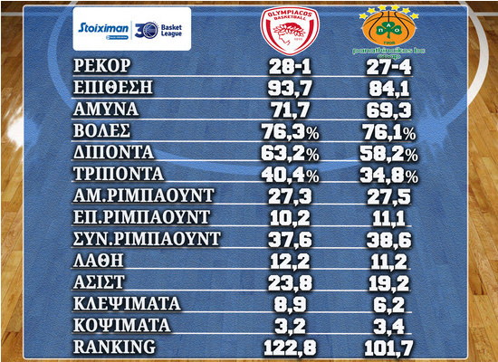 *Έξι κερδισμένες σειρές μέτρησε ο Ολυμπιακός και 12 ο Παναθηναϊκός ΟΠΑΠ.