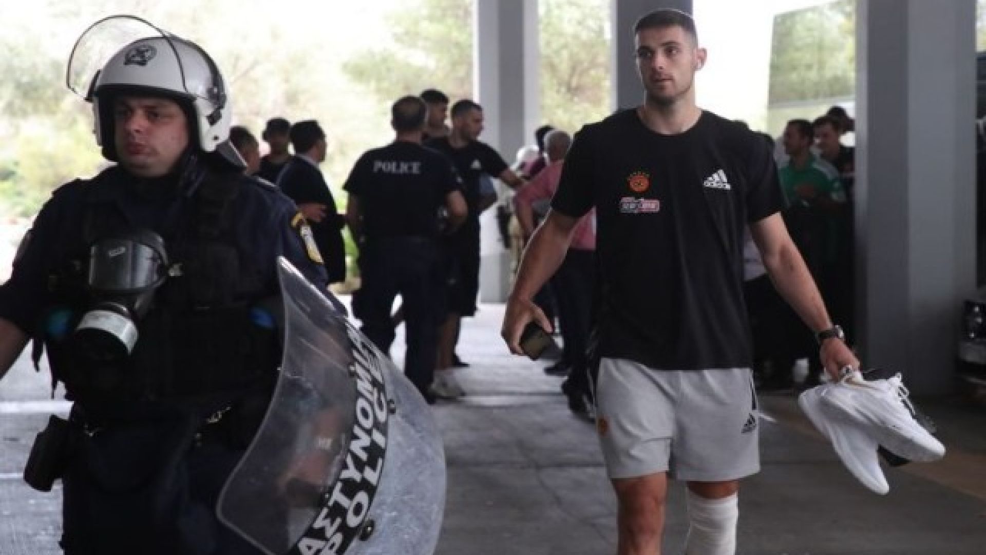 Με δεμένο το αριστερό του γόνατο έφτασε στο ΣΕΦ o Ιωάννης Παπαπέτρου λόγω του τραυματισμού του στο Game 4 στον αγώνα με την Λάρισα, οπού είχε χτυπήσι στην πινακίδα και αναγκάστηκε να περάσει την πόρτα του χειρουργείου.