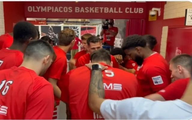 Ο αρχηγός του Ολυμπιακού, Γιώργος Πρίντεζης άναψε την σπίθα και έδωσε το σύνθημα στους ερυθρόλευκους, οι οποίοι τήρησαν τις παραδόσεις και έκαναν το ζντο, λίγο πριν μπουν στο γήπεδο για το Game 1 των τελικών της Basket League κόντρα στον Παναθηναικό.