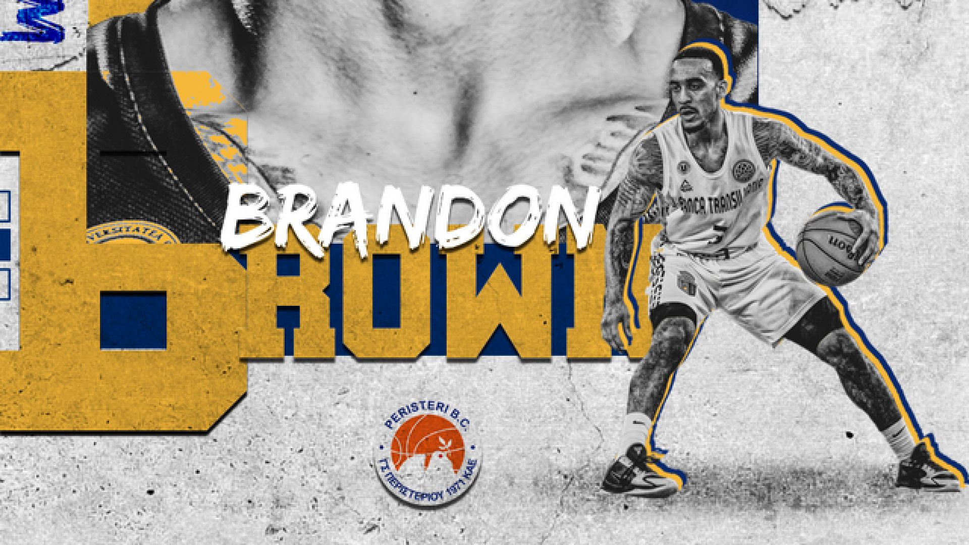 «Η ΚΑΕ Περιστέρι ανακοινώνει τη συμφωνία της με τον αθλητή Μπράντον Μπράουν (33χρ., 1.85), ο οποίος θα φοράει την φανέλα του συλλόγου για την αγωνιστική περίοδο 2022-2023.