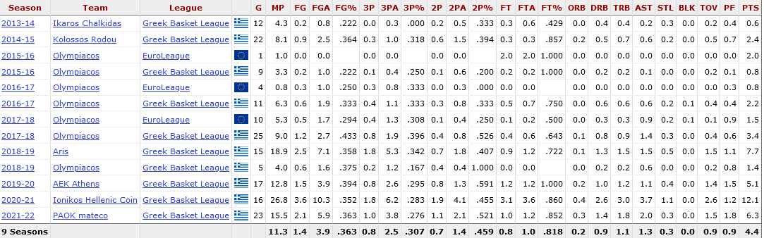Το καλοκαίρι του 2019 υπέγραψε διετές συμβόλαιο στην ΑΕΚ, στην οποία αγωνίστηκε για μία σεζόν. Το 2020-21 έπαιξε ως δανεικός στον Ιωνικό Νίκαιας, με τον οποίο έκανε την πιο παραγωγική σεζόν του στην Basket League (11,6 πόντους, 2,7 ριμπάουντ και 3,5 ασίστ κατά μέσο όρο). Πέρυσι, αγωνίστηκε στον ΠΑΟΚ και από σήμερα (06/07) είναι ξανά παίκτης του ΑΡΗ.