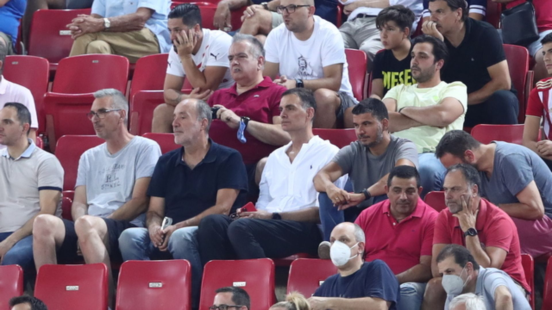 Ο Έλληνας τεχνικός βρίσκεται στη Θύρα 17 ανάμεσα στους οπαδούς της ομάδας του Μεγάλου Λιμανιού, καθώς πήγε να στηρίξει με την παρουσία του τον Ολυμπιακό και μάλιστα όχι από τις θέσεις των VIP.