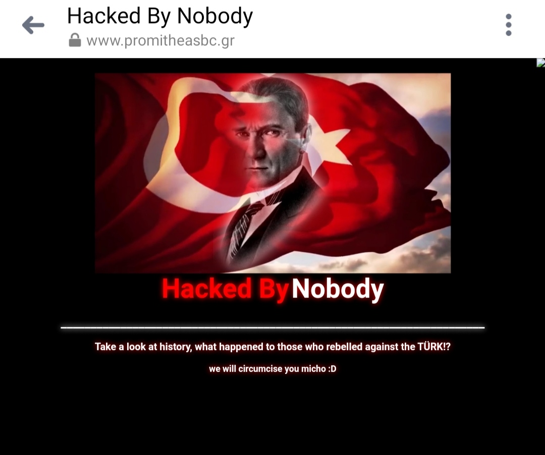 Την επίσημη ιστοσελίδα του Προμηθέα παραβίασαν Τούρκοι χάκερς, με το σάιτ των Πατρινών να δείχνει τον Κεμάλ Ατταρούρκ αντί για τα νέα της ομάδας.