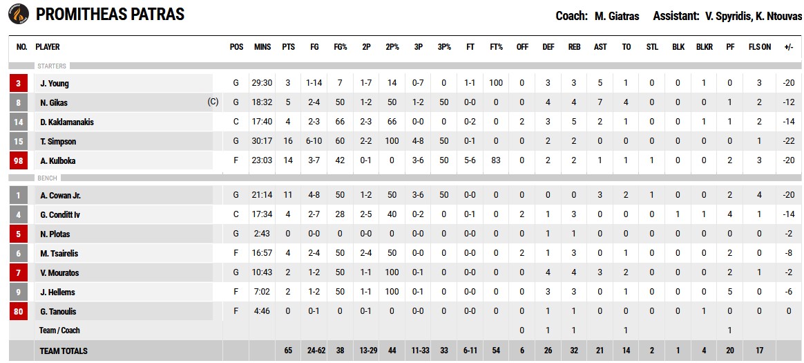 Ξεχώρισαν: Πίτερς, Βεζένκοφ, Μπολομπόι, Φαλ, αλλά και Λούντζης για τον Ολυμπιακό, Σίμπσον, Κουλμπόκα από τον Προμηθέα δίπλα στην σταθερή αξία που ακούει στο όνομα Νϊκος Γκίκας στην οργάνωση για τον Προμηθέα Πάτρας.