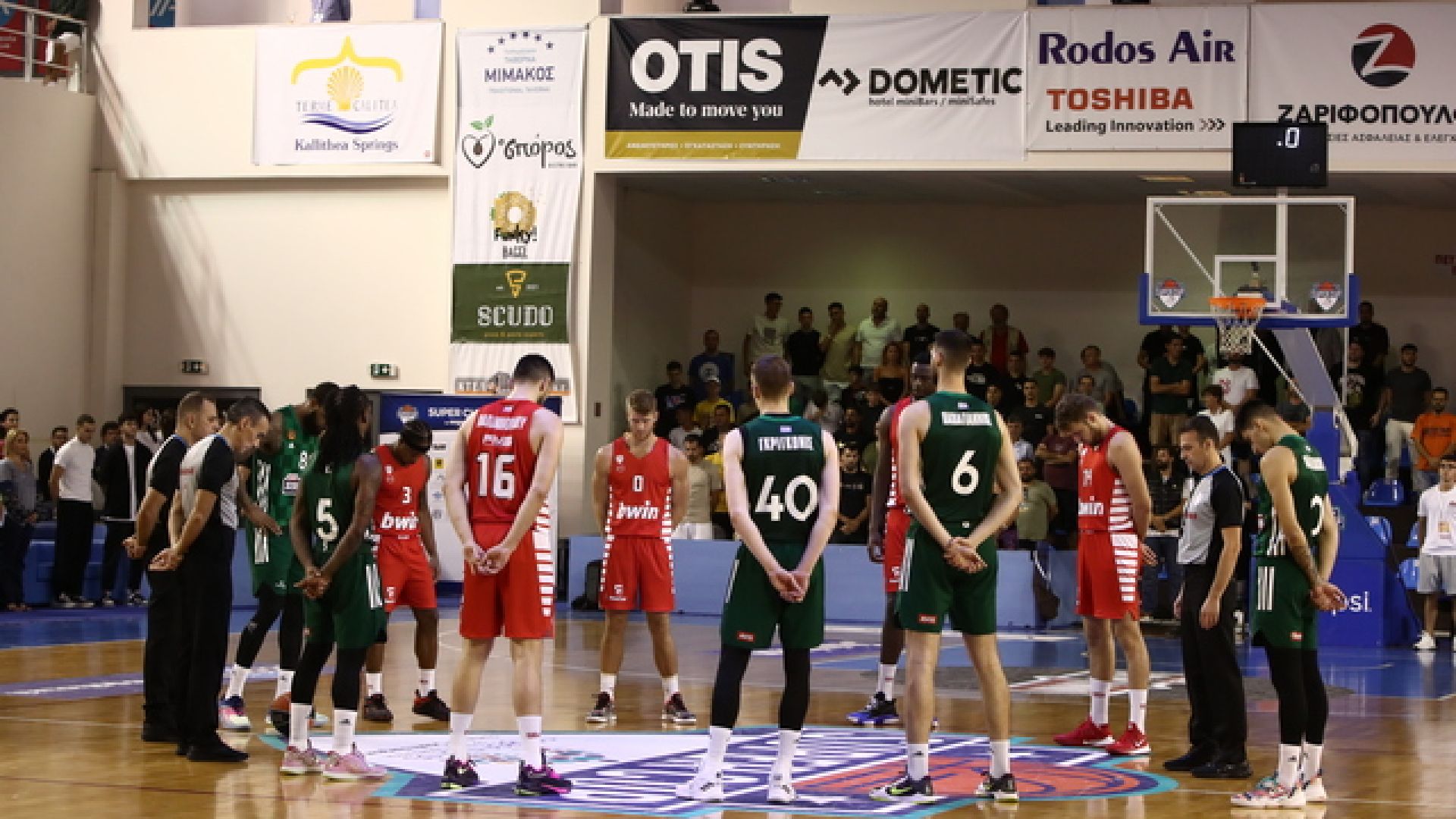 Ενός λεπτού σιγή στη μνήμη του επί χρόνια στελέχους του ΕΣΑΚΕ, Γιώργου Κονδύλη, τηρήθηκε στο κλειστό της Καλλιθέας Ρόδου ακριβώς πριν την έναρξη του ντέρμπι που κρίνει τον πρώτο τίτλο της σεζόν.