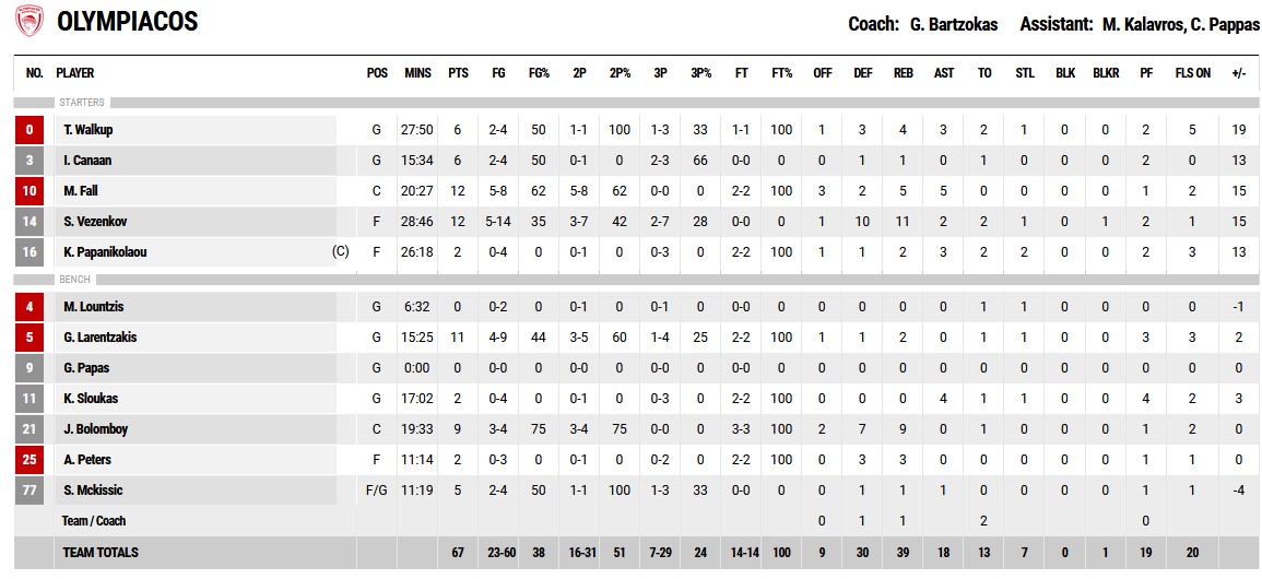 Ξεχώρισαν: Ο Φαλ είναι το απόλυτο κλειδί για τον Ολυμπιακό, Βεζένκοφ ήταν και πάλι εκεί , ενώ ο Παπανικολάου είναι σταθερά η "κόλλα" της ομάδας. Ο Λι προσπάθησε, αλλά ο Παναθηναϊκός πρέπει στη συνέχεια να πάρει πολύ περισσότερα από περισσότερους παίκτες και κυρίως από τους Πονίτκα - Γκριγκόνις που φαίνεται πως δεν έχουν προσαρμοστεί ακόμη.