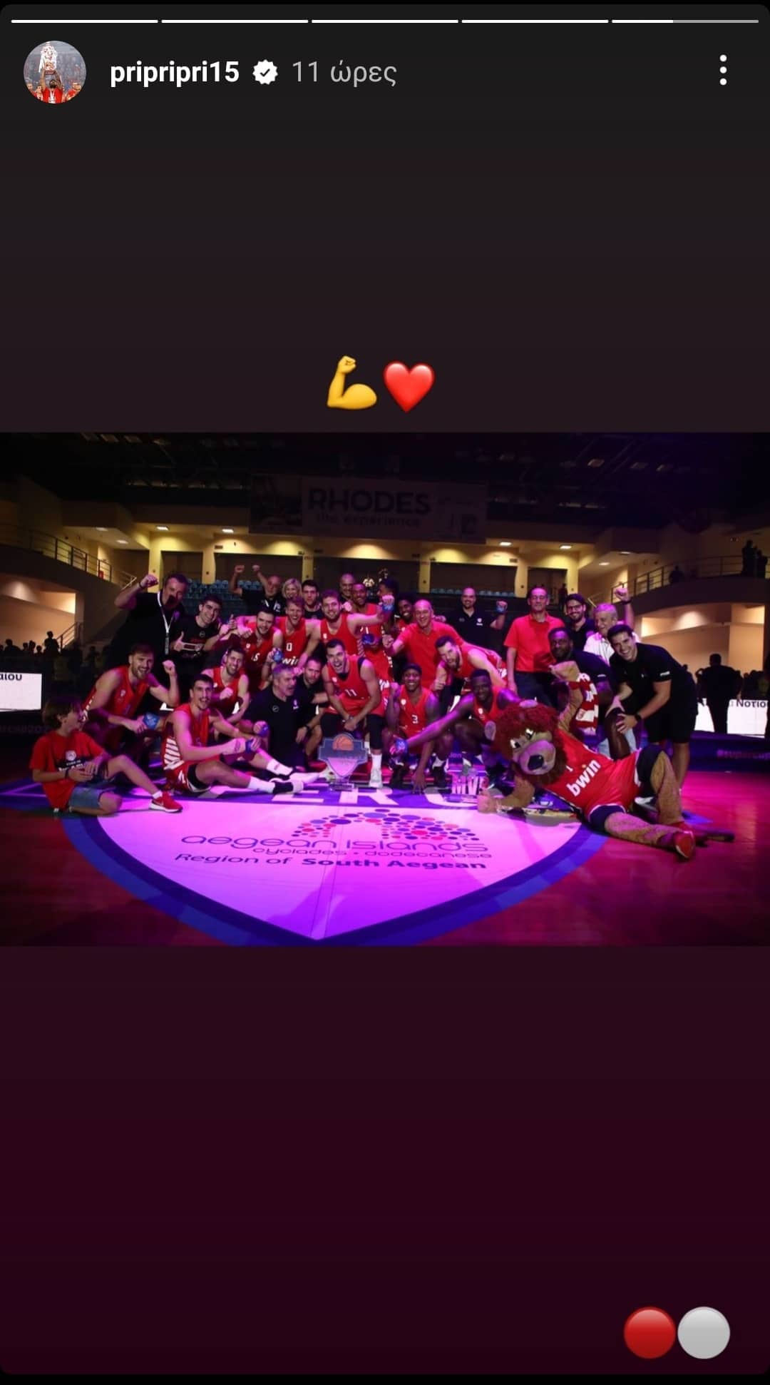 Την χαρά του έδειξε ο Γιώργος Πρίντεζης για την κατάκτηση του Super Cup από τον Ολυμπιακό, κάνοντας μια σχετική ιστορία, με την οποία συνεχάρη τους Πειραιώτες.