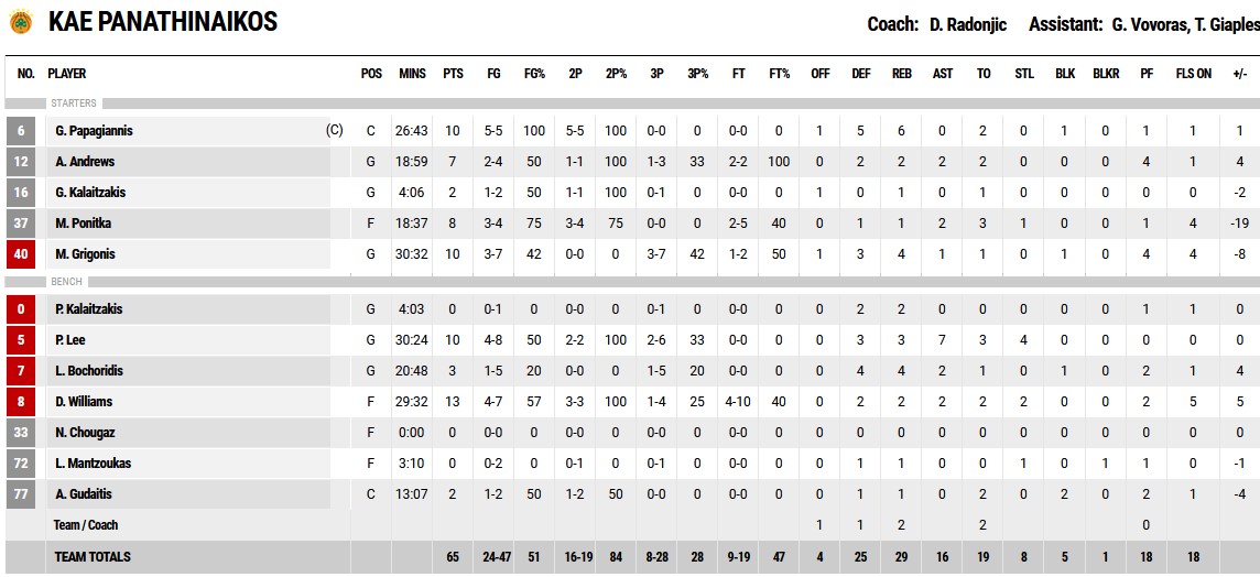 Ξεχώρισαν: Γκούντγουιν, Χάγκινς από τον Άρη που έκανε μια ομαδική προσπάθεια, ενώ από τον Παναθηναϊκό ο Λι και ο Ουίλιαμς του δευτέρου ημιχρόνου