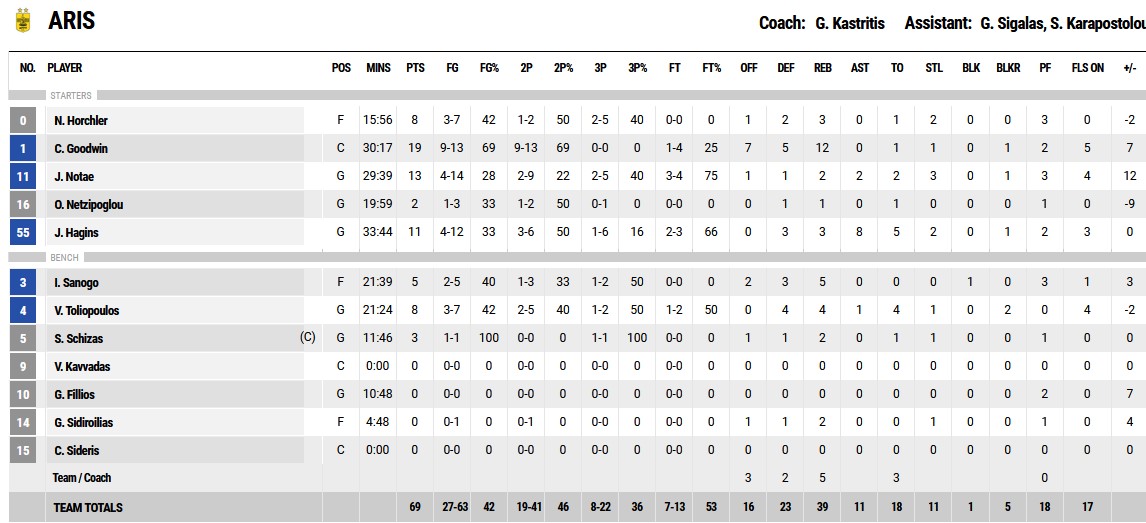 On fire: Ο Τσέβεζ Γκούντγουιν ήταν αυτός που φάνηκε να είναι παντού στο παρκέ. Τελείωσε το παιχνίδι με double double με 19 πόντους και 12 ριμπάουντ και ήταν καθοριστικός στην επικράτηση του Άρη στη διάρκεια του παιχνιδιού στη ρακέτα.