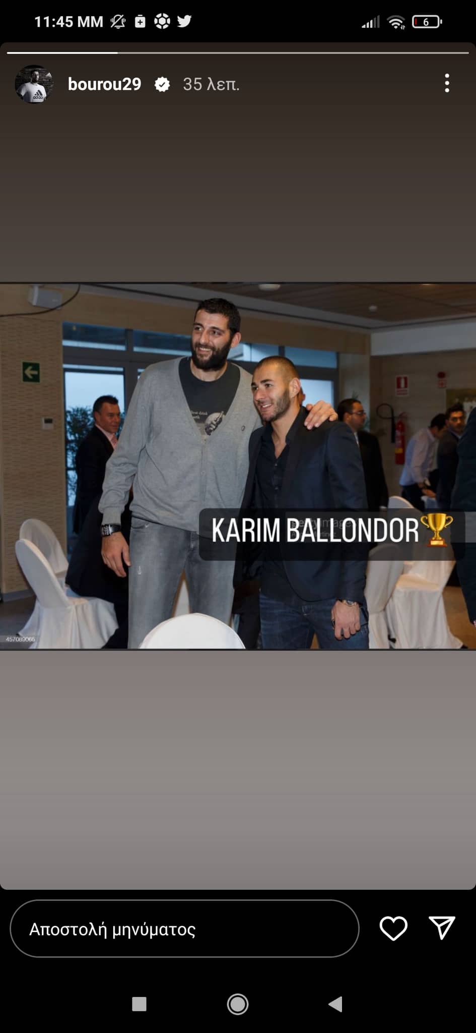 Ο ποδοσφαιριστής της Ρεάλ, Καρίμ Μπενζεμά βραβεύτηκε με τη Χρυσή Μπάλα και ο πρόεδρος της Καρδίτσας, αλλά και άλλοτε παίκτης της Ρεάλ, Γιάννης Μπουρούσης έδειξε τη χαρά του με στόρι στο instagram.