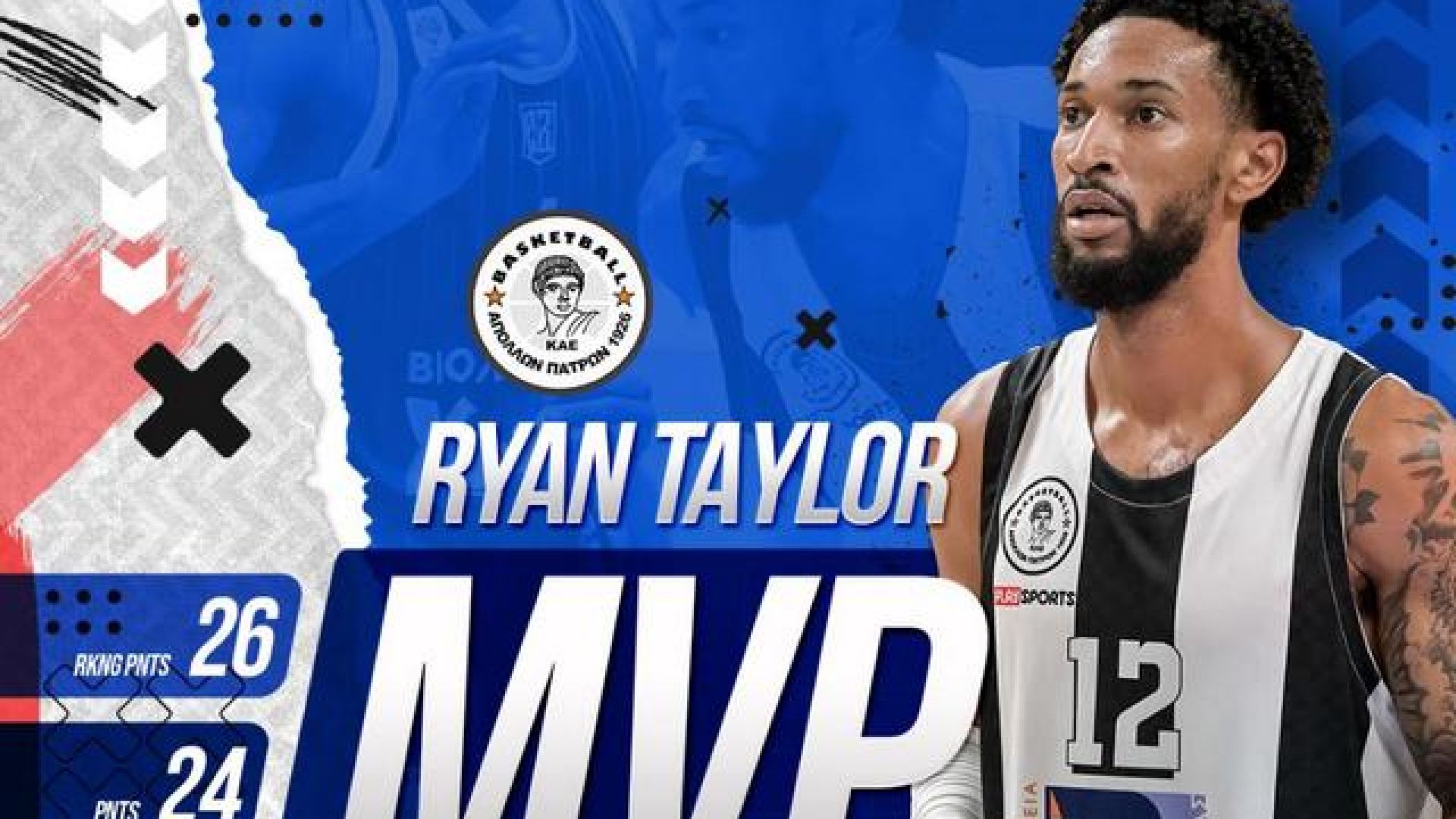 Ο Ράιαν Τέιλορ είναι ο πολυτιμότερος παίκτης της 3ης αγωνιστικής του πρωταθλήματος με τον αθλητή του Απόλλωνα να συμβάλει καθοριστικά στην πρώτη νίκη των Πατρινών.