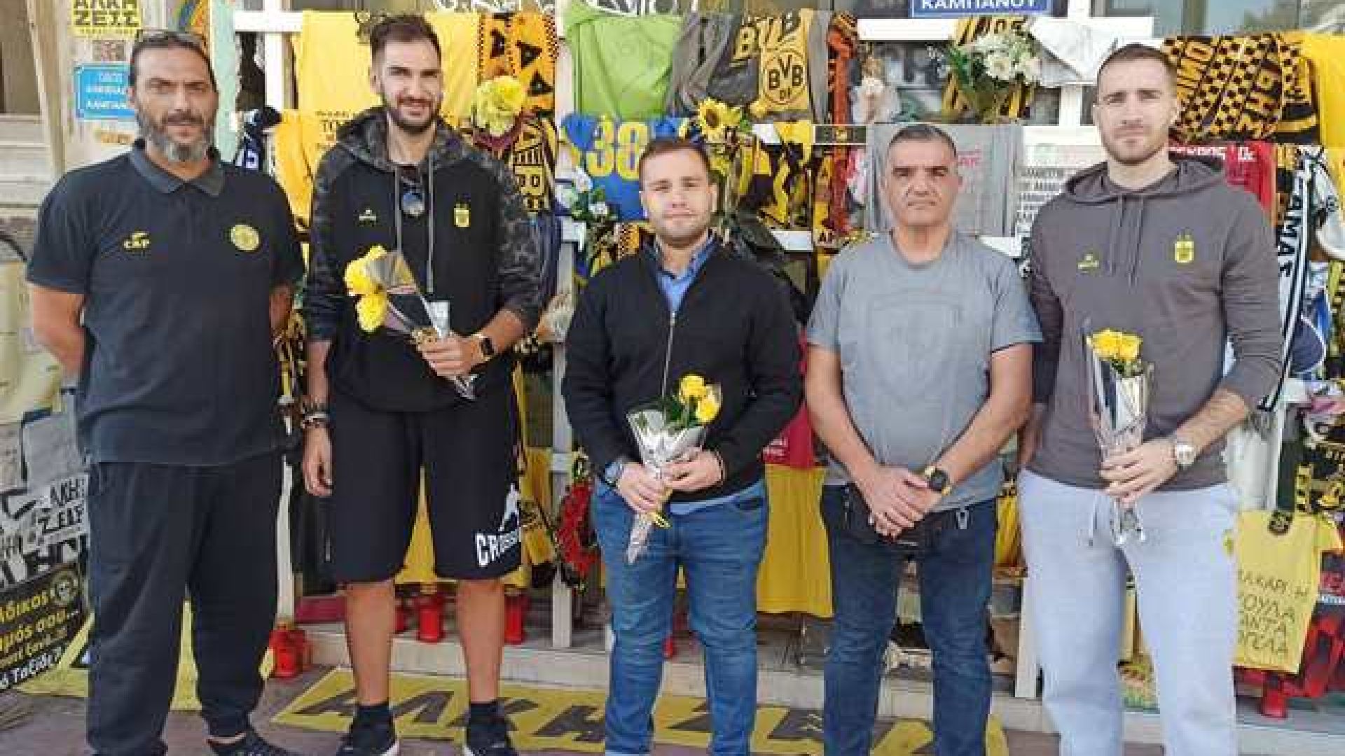 Ο αρχηγός του ΑΡΗ, Σταύρος Σχίζας, ο τιμ μάνατζερ της ΚΑΕ, Χρήστος Ταπούτος και αντιπροσωπεία του Α.Σ. με επικεφαλής τον ταμία, Αλέξανδρο Γκαντώνα, βρέθηκαν στο σημείο της δολοφονίας του Άλκη το μεσημέρι της Τρίτης και άφησαν 9 κίτρινα τριαντάφυλλα. Μπορεί ο καιρός να περνά, όμως η συγκίνηση και ένα μεγάλο «γιατί» είναι στον αέρα της οδού Αλκιβιάδη Καμπανού, κάθε φορά που κάποιος στρίβει στο μοιραίο στενό.