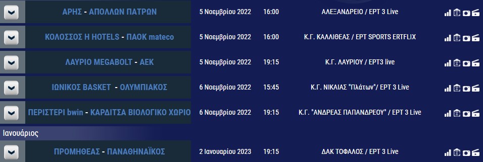 Την Κυριακή 6/11, ενώ υπενθυμίζεται ότι η 5η αγωνιστική της Basket League ολοκληρώνεται στις 2/1/2023 με το εξ αναβολής Προμηθέας - Παναθηναϊκός.