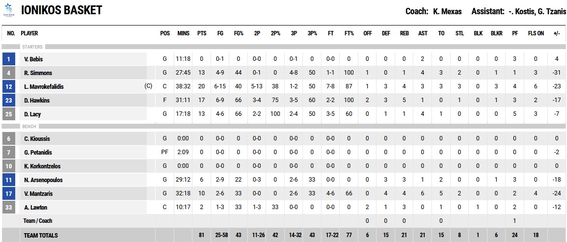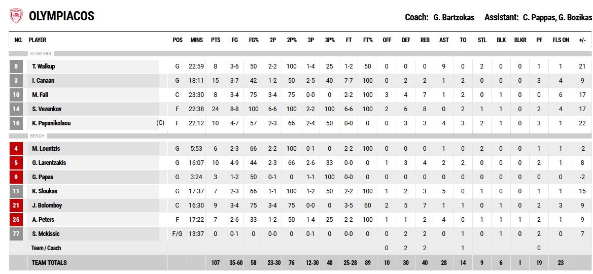 Ξεχώρισαν: Βεζένκοφ, Παπανικολάου, Γουόκαπ, Φαλ από τον Ολυμπιακό, Μαυροκεφαλίδης, Σίμονς, Χόκινς από τον Ιωνικό