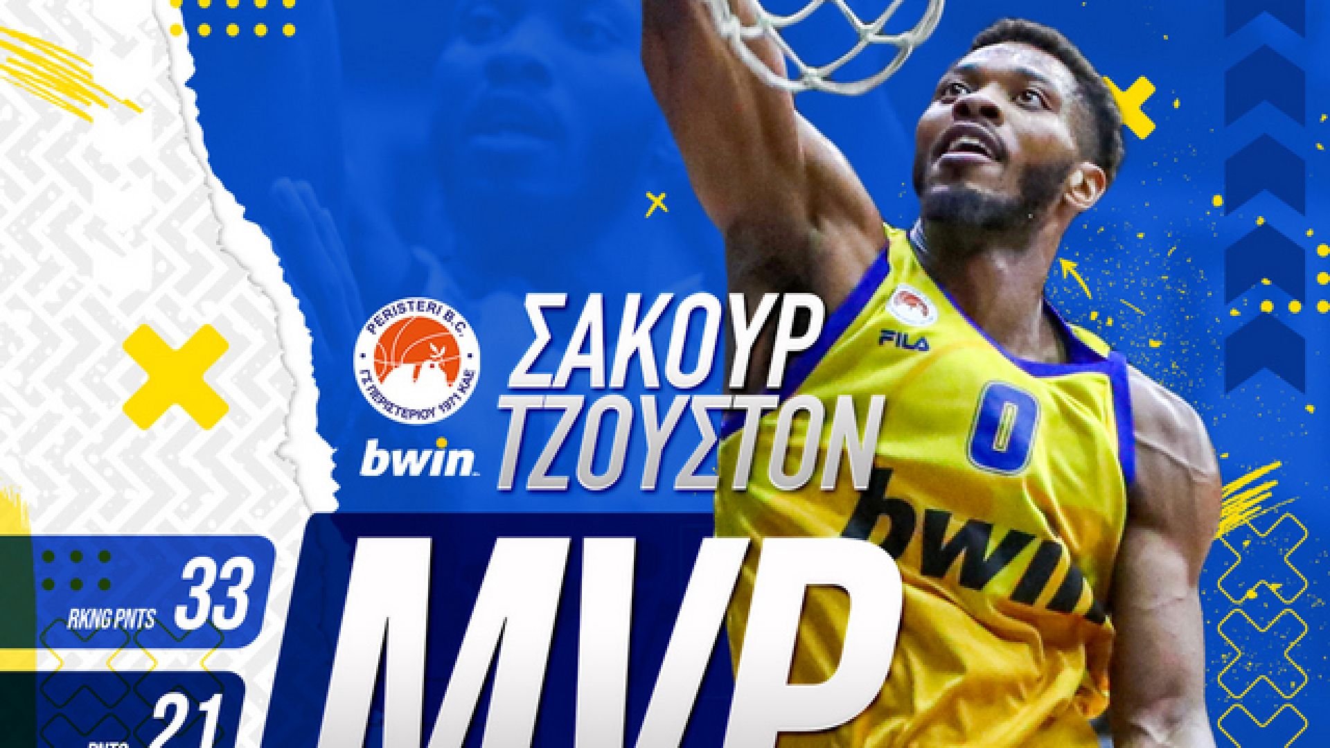 Ο Σακούρ Τζούστον με την πληθωρική εμφάνιση του στη νίκη του Περιστερίου bwin επί της Καρδίτσας ΒΙΟΛΟΓΙΚΟ ΧΩΡΙΟ είναι ο MVP της 5ης εβδομάδας της Basket League της φετινής σεζόν!