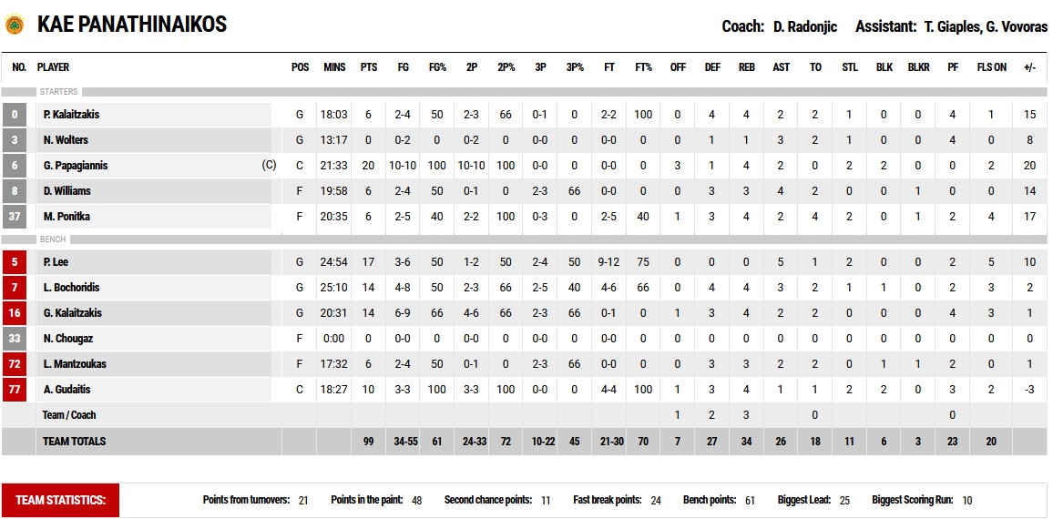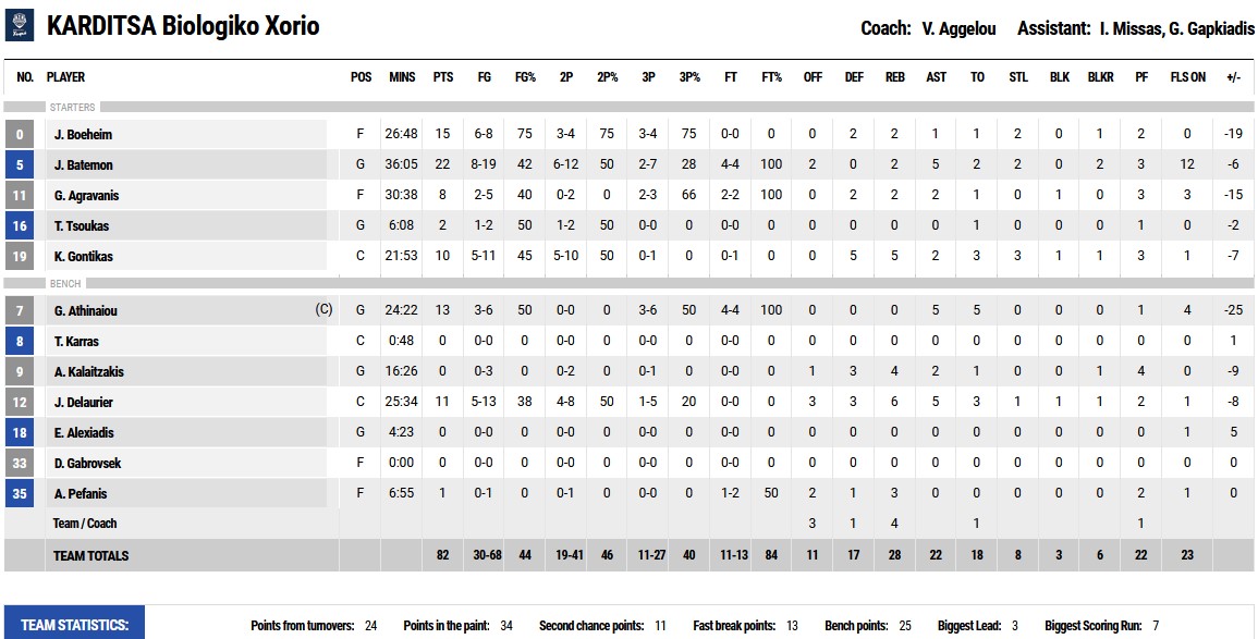 Η μεγαλύτερη διαφορά: +3 για Καρδίτσα (0-3, 20’’), +26 για τον Παναθηναϊκό (31-56, 18’45’’)