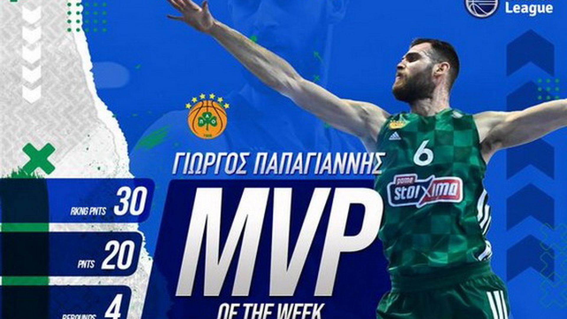 Ο 25χρονος διεθνής σέντερ του Παναθηναϊκού είναι ο MVP of the Week της έκτης εβδομάδας. Ο Παπαγιάννης συγκέντρωσε στην εκτός έδρας νίκη των «πρασίνων» επί της Καρδίτσας ΒΙΟΛΟΓΙΚΟ ΧΩΡΙΟ για την 6η αγωνιστική της κανονικής περιόδου της Basket League 30 βαθμούς στο ranking με 20 πόντους με 10/10 δίποντα, 4 ριμπάουντ, 2 ασίστ, 2 κοψίματα, 2 κερδισμένα φάουλ και 2 κλεψίματα σε 21’ και 33’’ συμμετοχής!