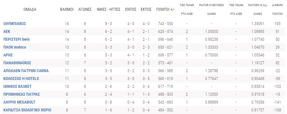 Αναλυτικά το πρόγραμμα και η βαθμολογία της 9ης αγωνιστικής της Basket League