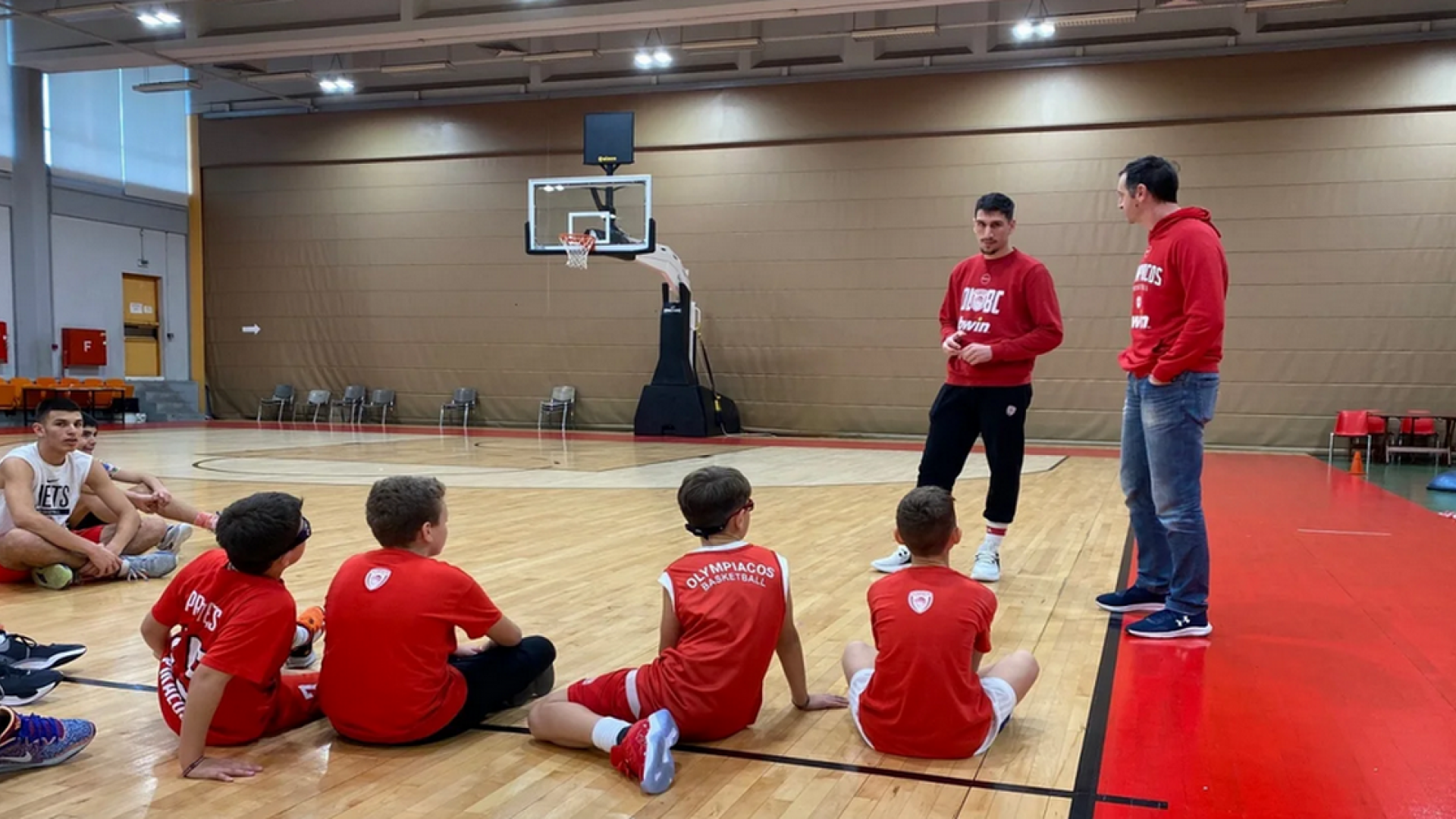 Ο διεθνής "ερυθρόλευκος" άσος βρέθηκε κοντά στους εκκολαπτόμενους μπασκετμπολίστες και μοιράστηκε μαζί τους τα μυστικά του αθλήματος.