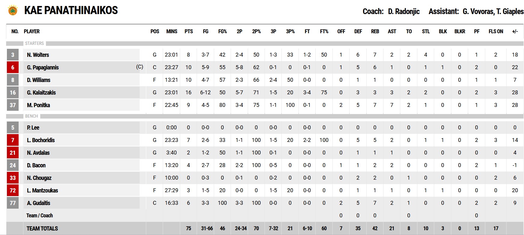 Ο Παναθηναϊκός έβαλε τις βάσεις από το πρώτο δεκάλεπτο και έφτασε στη νίκη με 75-44 επί του Προμηθέα Πάτρας στο "Δ. Τόφαλος" σε παιχνίδι εξ αναβολής για την 5η αγωνιστική της Basket League. Με αυτόν τον τρόπο ο Παναθηναϊκός έφτασε στο 8-2 και στη δεύτερη θέση της κατάταξης πίσω από τον αήττητο Ολυμπιακό και πάνω από το Περιστέρι, το οποίο αντιμετωπίζει στις 7 Ιανουαρίου στο ΟΑΚΑ. Οι Αχαιοί βρίσκονται στο 4-6 και στην 8η θέση πίσω από τον Κολοσσό Ρόδου.