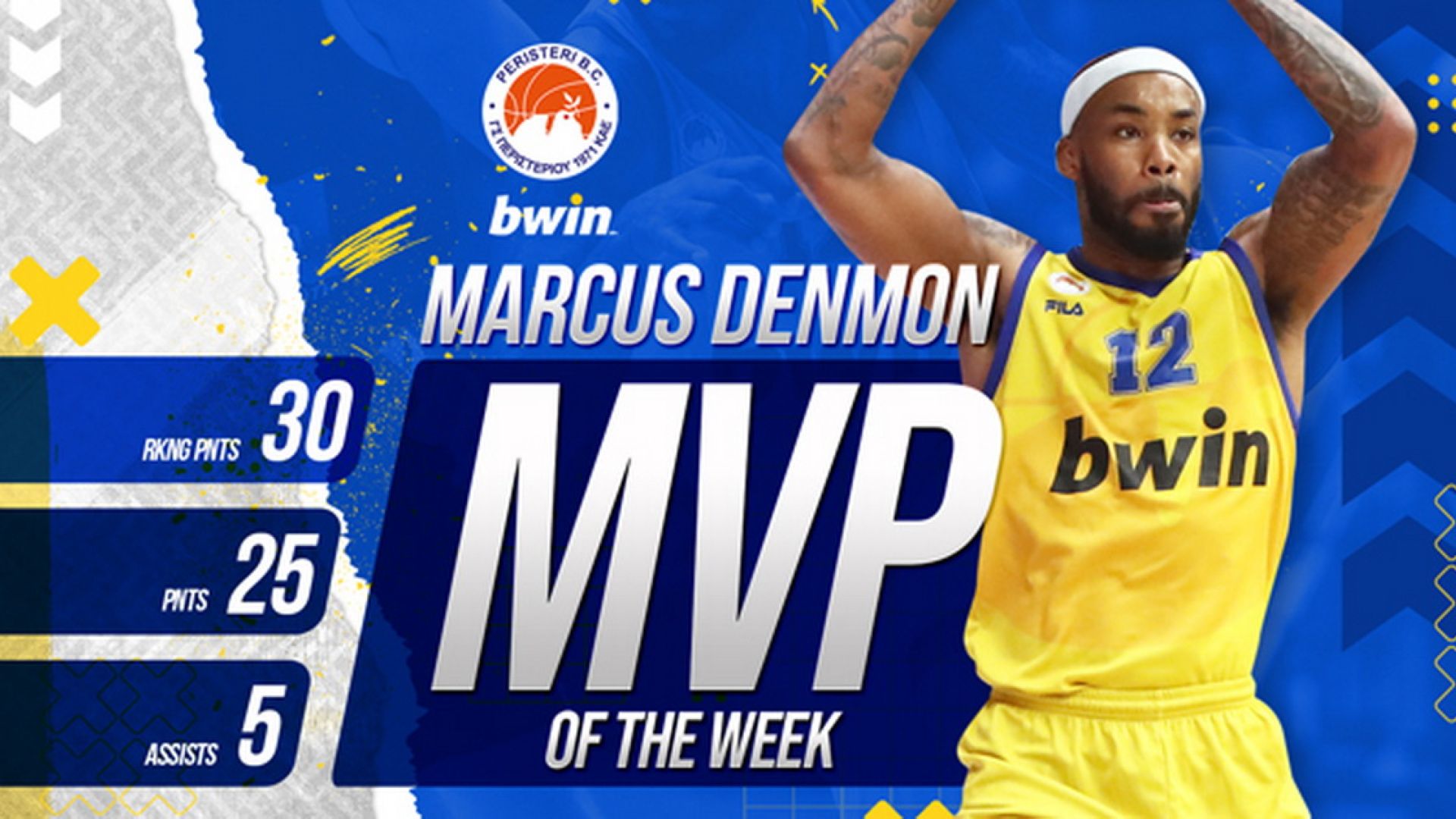 Με τον τίτλο του MVP of the Week ξεκίνησε το 2023 ο Μάρκους Ντένμον, έπειτα από τους 30 βαθμούς που συγκέντρωσε στο σύστημα αξιολόγησης, στη νίκη του Περιστερίου bwin στο ματς με τον Προμηθέα Πάτρας.