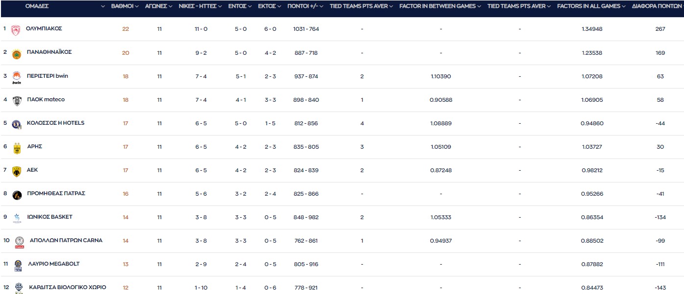 Η βαθμολογία της Basket League: