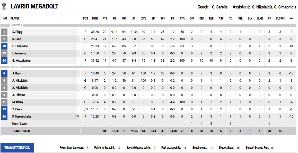Ξεχώρισαν: Φλαγκ, Κόουλ, Κολοβέρος, Κουζέλογλου, Λάνγκεβιν για το Λαύριο, Πονίτκα, Λι για τον Παναθηναϊκό