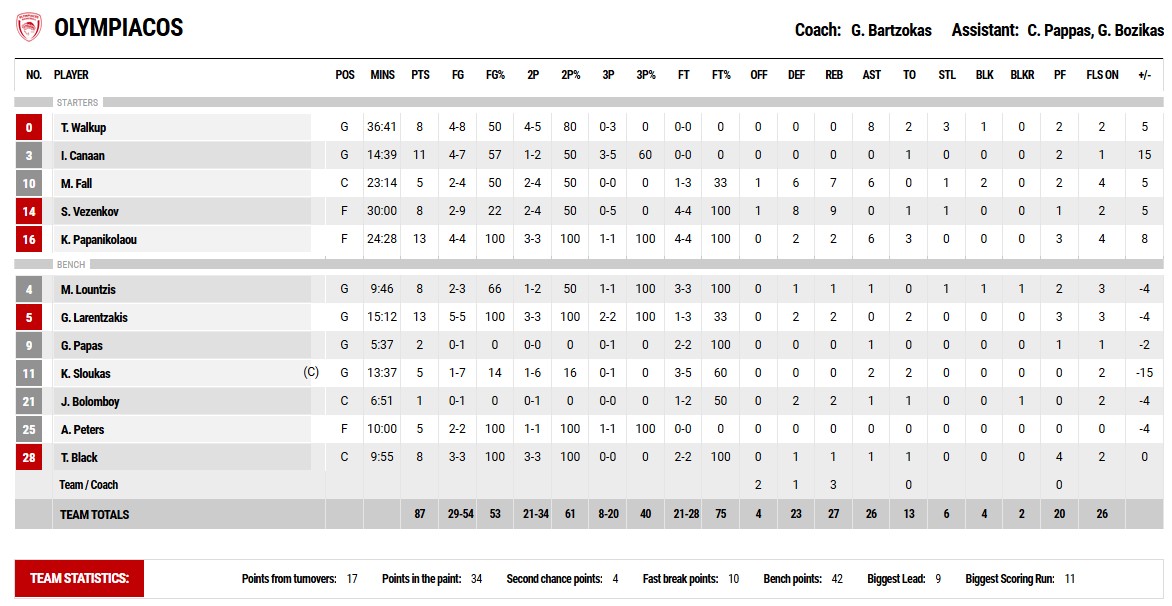 *Εκτός δωδεκάδας για τον Ολυμπιακό έμεινε ο Σακίλ ΜακΚίσικ. Το Περιστέρι έπαιξε χωρίς τον Τζούστον και τον τραυματία Αγραβάνη.