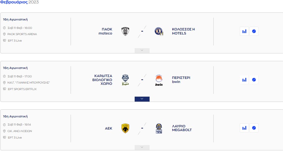 Τέλος, το Σάββατο 11/2 το τελευταίο χρονικά παιχνίδι είναι εκείνο που διεξάγεται στα Άνω Λιόσια όπου η ΑΕΚ θέλει να γλιτώσει από... «ανεπιθύμητες εκπλήξεις», καθώς υποδέχεται το Λαύριο που μαζί με την Καρδίτσα αποτελούν τους ουραγούς της Basket League.