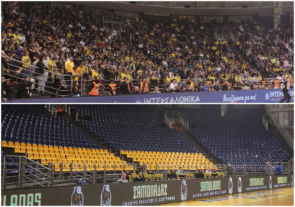 Μόνο ως προσπάθεια αφανισμού της φετινής (υπερ)προσπάθειας της ομάδας μας μπορούμε να εκλάβουμε όσα τραγελαφικά έλαβαν χώρα χθες (05/03), στον αγώνα με το Περιστέρι Bwin. Ο ΑΡΗΣ έπαιξε με πολλά αγωνιστικά προβλήματα, είχε και πάλι εναντίον του τα σφυρίγματα, όμως όπως φαίνεται δεν αρκούσε απλά η απώλεια της νίκης. Έπρεπε να στερηθεί την παρουσία των φιλάθλων που έχουν κάνει όλη την Ευρώπη να μιλά γι’ αυτούς στα 3/5 του αγώνα, ή να μηδενιστεί. Αυτές ήταν οι δύο επιλογές που μας άφησε η κ. Τσαρούχα, χωρίς κανείς να αντιληφθεί το γιατί. Ούτε καν οι τηλεοπτικές κάμερες, στις οποίες καταφύγαμε προκειμένου να διαπιστώσουμε αν πράγματι συνέβησαν όσα αναγράφηκαν στο φύλλο αγώνα.