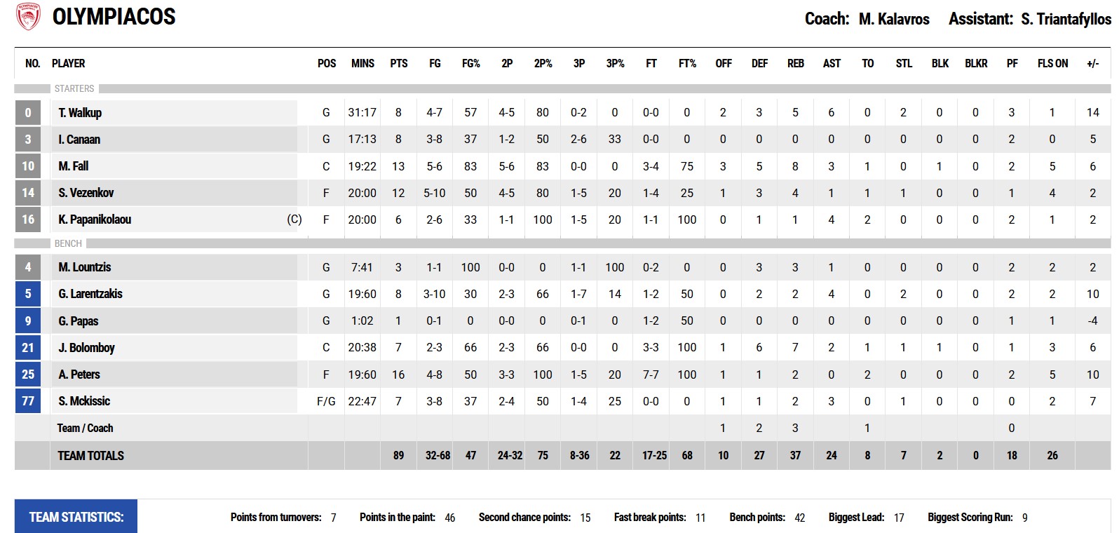 Ξεχώρισαν: Φαλ, ΜακΚίσικ, Πίτερς, Λαρεντζάκης, Γουόκαπ από τον Ολυμπιακό, Μουράτος, Κόντιντ, Κάουαν,, Τόμασον από τον Προμηθέα