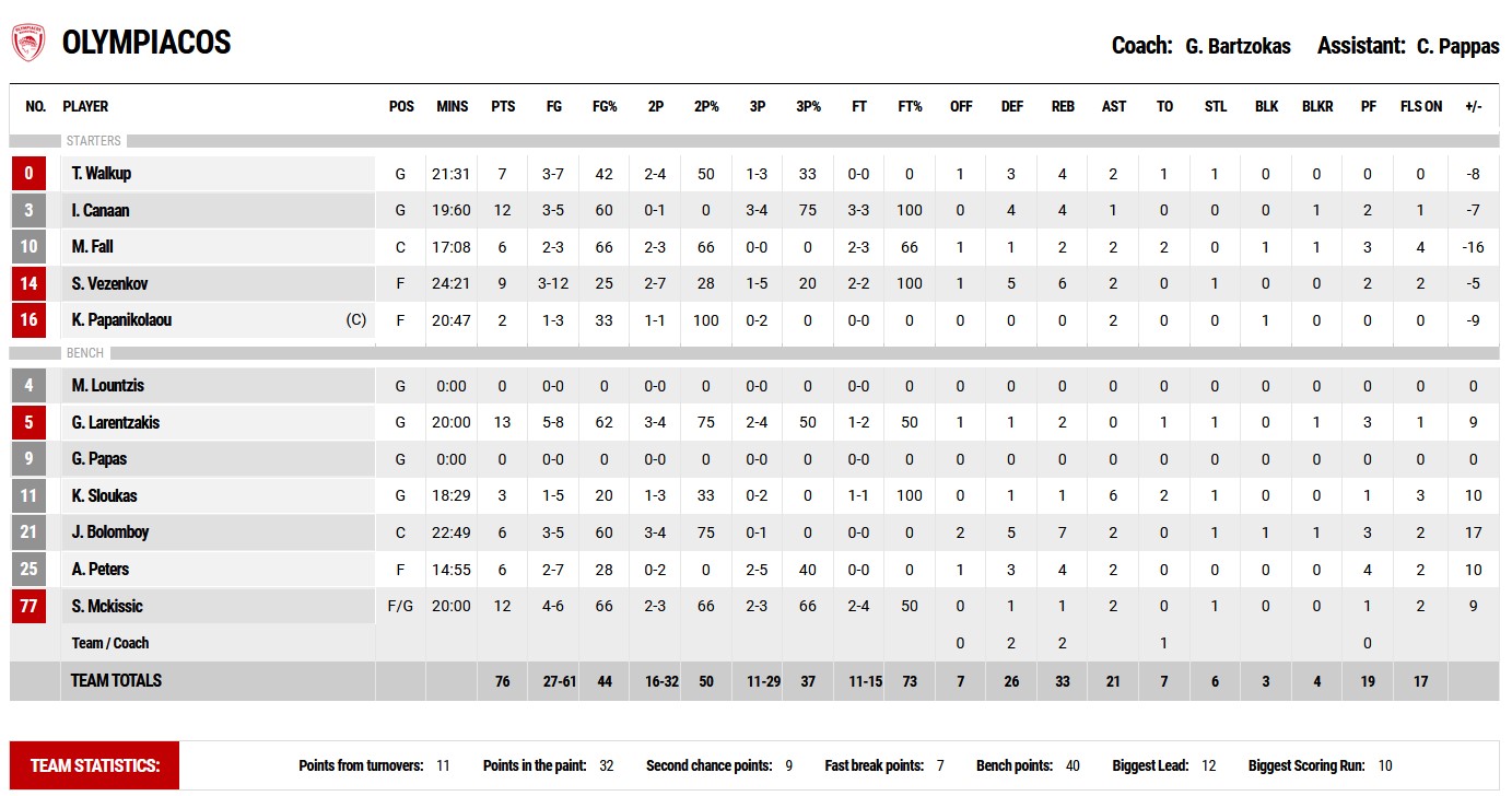 Η μεγαλύτερη διαφορά: +3 (6-3, 3’) για τον Παναθηναϊκό, +11 (38-49, 21') για τον Ολυμπιακό