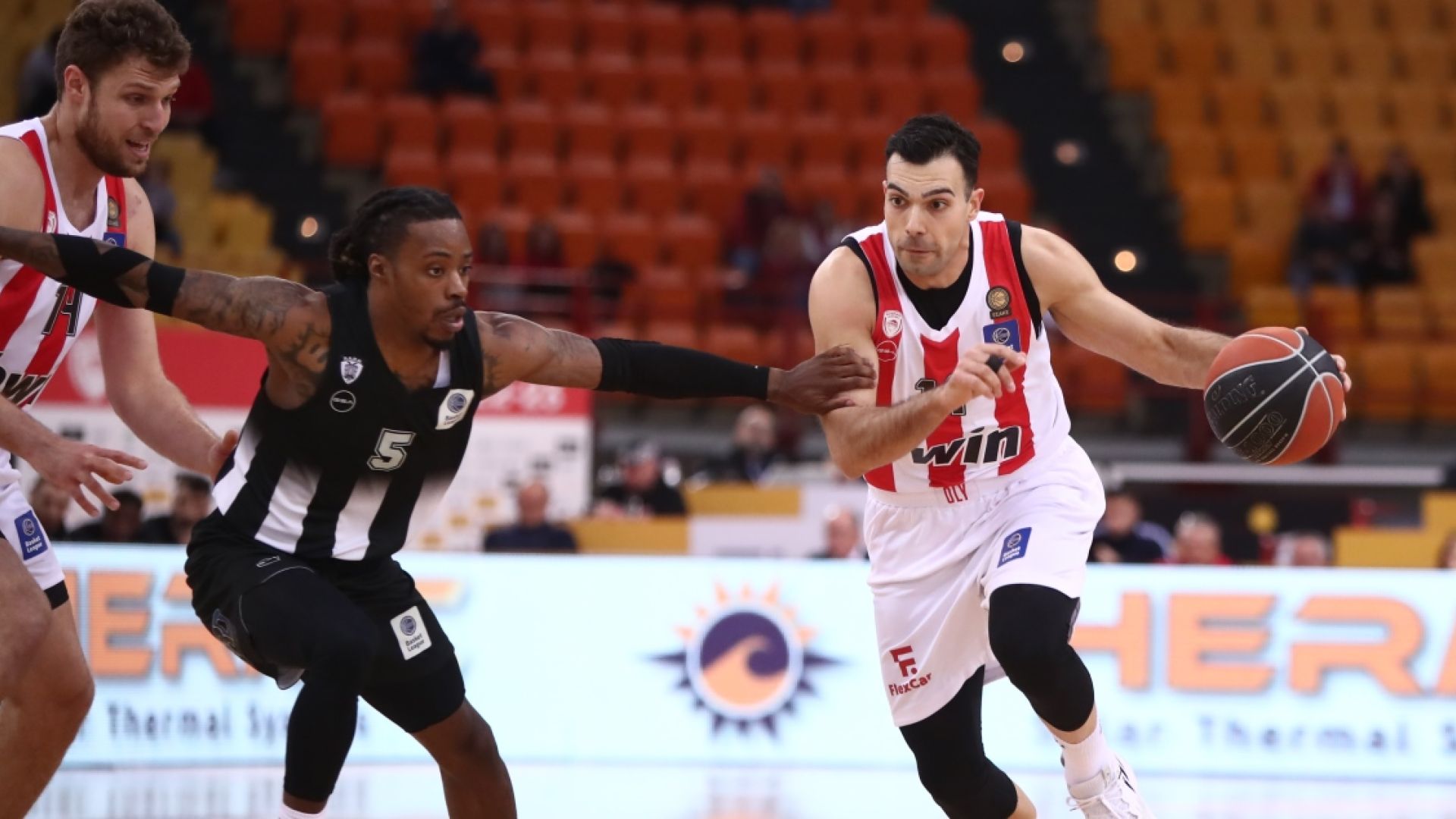 O Γιώργος Μπαρτζώκας ανακάτεψε την τράπουλα στην αρχική πεντάδα μετά τη δική του επιστροφή στην άκρη του πάγκου, αφού ταλαιπωρήθηκε από ίωση. Σλούκας και Λούντζης ήταν στο τζάμπολ της αναμέτρησης στο παρκέ, δίπλα στους… συνήθεις υπόπτους Παπανικολάου, Βεζένκοφ και Φαλ. Η ομάδα του μπήκε με ένα 5-0 (1’30’’), αλλά οι Θεσσαλονικείς αντέδρασαν (5-8, 3’) με πίεση στην άμυνα που οδήγησε σε εύκολα καλάθια στον αιφνιδιασμό και ένα τρίποντο από τον Ράιλι.