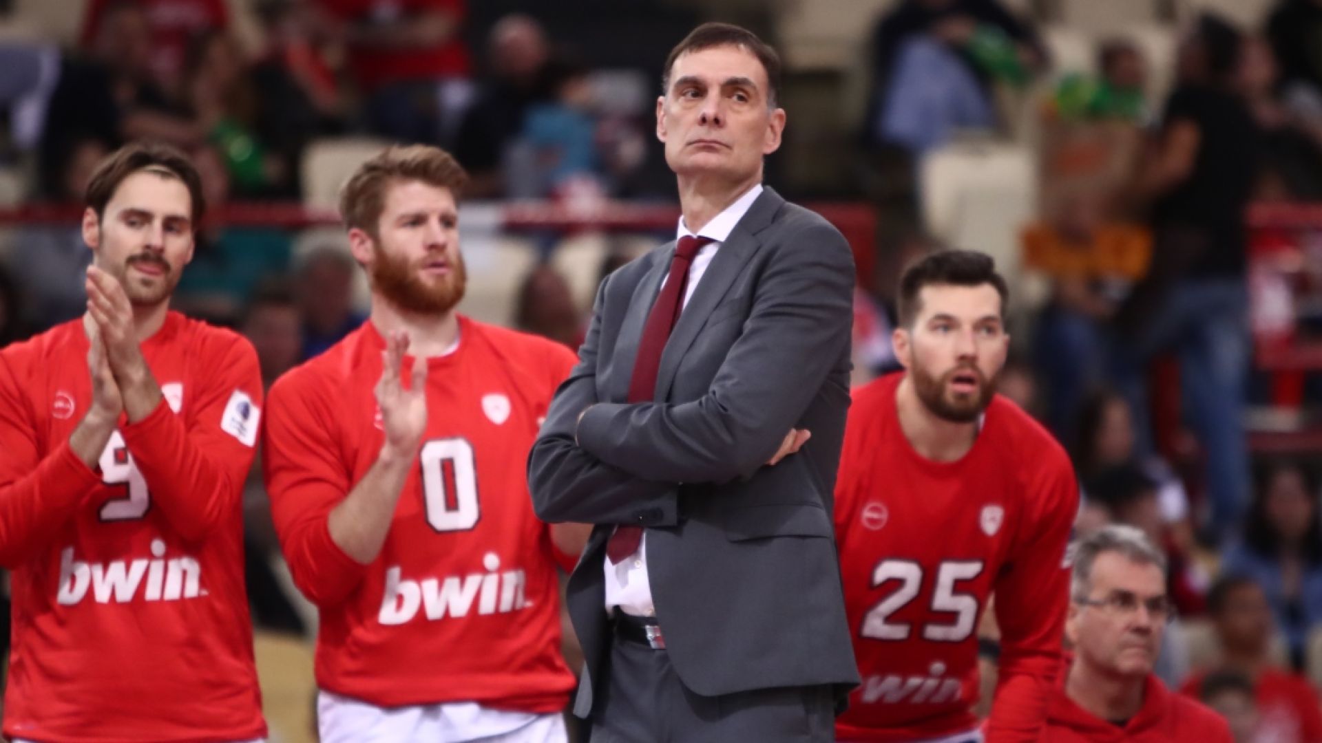 Για τη δική του απουσία και το γεγονός ότι είδε δύο αγώνες από την τηλεόραση τόνισε: «Το μπάσκετ είναι η δουλειά μου, όχι η ζωή μου. Η αλήθεια είναι ότι μου έλειψε πολύ. Είναι 100 φορές χειρότερα να βλέπεις από την τηλεόραση ένα παιχνίδι. Για τους τηλεθεατές είναι ωραία να βλέπουν τον Ολυμπιακό έτσι ίσως, αλλά για τον προπονητή, όχι και τόσο».