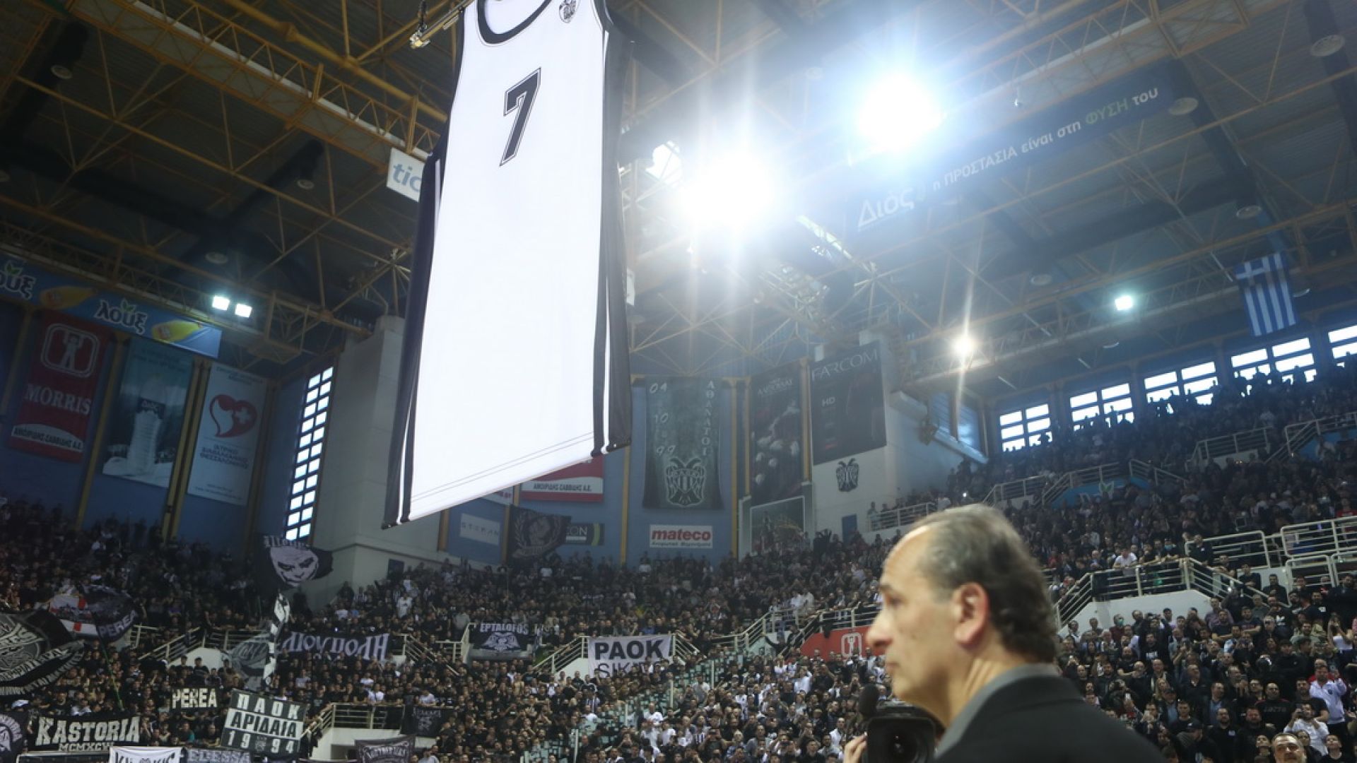 Από όλα είχε ο αγώνας του ΠΑΟΚ με την ΑΕΚ. Δάκρυα συγκίνησης για τον θρυλικό Μπάνε Πρέλεβιτς, που είδε την φανέλα του να υψώνεται στην οροφή του κλειστού της Πυλαίας και αποθέωση για την νίκη του δικέφαλου επί της ΑΕΚ.