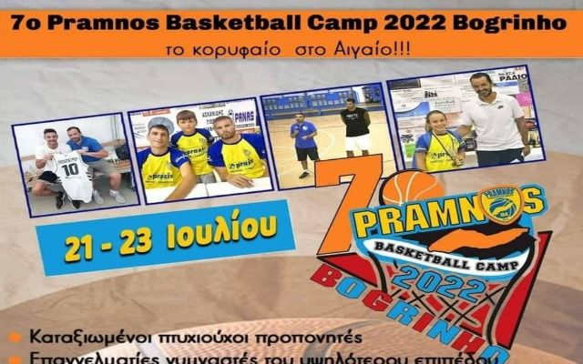 Όλα όσα πρέπει να ξέρετε για το 7ο Pramnos Basketball Camp 2022 Bogrinho, το οποίο θα διεξαχθεί στις 21-22 και 23 Ιουλίου 2022, στις εγκαταστάσεις του κλειστού γυμναστηρίου Αγίου Κηρύκου Ικαρίας.