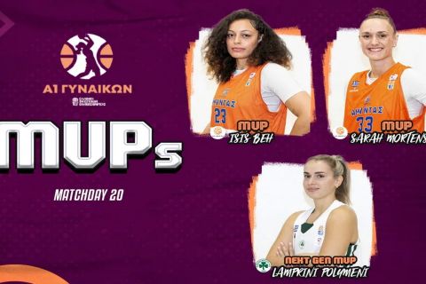 Αυτές είναι οι πολυτιμότερες παίκτριες της 20ης… στροφής του πρωταθλήματος της Α1 Γυναικών.