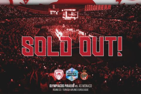 Ο Ολυμπιακός ανακοίνωσε πως τα διαθέσιμα εισιτήρια για την αναμέτρηση της ομάδας κόντρα στη Μονακό το βράδυ της Πέμπτης (27/03, 21.15) στα πλαίσια της 32ης αγωνιστικής της Euroleague, εξαντλήθηκαν.