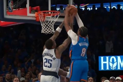 Ο Τζέιλεν Γουίλιαμς των Οκλαχόμα Σίτι Θάντερ πραγματοποίησε ένα εκπληκτικό κάρφωμα κόντρα στους Μάβερικς το οποίο του χάρισε την πρώτη θέση στο top 10 των Game 2 του 2ου γύρου των πλέι οφ του NBA.