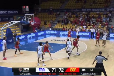 Απίστευτη εξέλιξη είχε η μονομαχία της Γαλλίας με την Ισπανία, για τα προημιτελικά του Eurobasket U20, που βρήκε νικητές τους «μπλε» με 74-72, καθώς κρίθηκε με καλάθι στο φινάλε της αναμέτρησης.