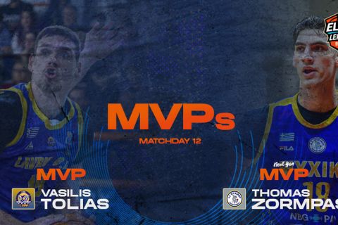 Elite League: Κορυφαίος της 12ης αγωνιστικής ο Τόλιας, MVP Next Gen ο Ζορμπάς