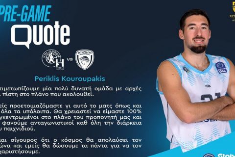 Ο Κολοσσός υποδέχεται τον Ολυμπιακό (25/1, 13:00), με τον Περικλή Κουρουπάκη, με δηλώσεις του στην επίσημη ιστοσελίδα της ομάδας, να αναφέρεται στο παιχνίδι απέναντι στους πρωταθλητές.