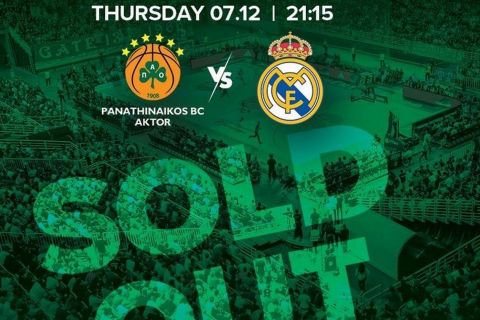 Καρφίτσα δεν θα πέφτει στο κλειστό του ΟΑΚΑ το βράδυ της Πέμπτης (7/12 , 21:15 ) με τους πράσινους να ανακοινώνουν πως τα εισιτήρια με την Ρεάλ Μαδρίτης έχουν εξαντληθεί.