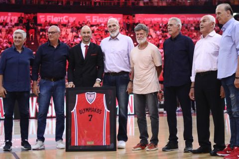 Ο Γιώργος Πρίντεζης έχει τερματίσει την τεράστια καριέρα του, όμως παραμένει ο αγαπημένος της ερυθρόλευκης εξέδρας, κάτι που φάνηκε και στο Κάουνας.