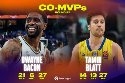 Euroleague: Σε Μπέικον και Μπλατ το βραβείο του MVP της 32ης αγωνιστικής (pic, vids)