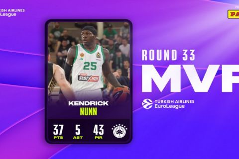 Στα χέρια του Κέντρικ Ναν κατέληξε το βραβείο του πολυτιμότερου παίκτη της 33ης αγωνιστικής της Euroleague.