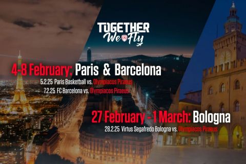Θες να ταξιδέψεις με την αποστολή του Ολυμπιακού και να ζήσεις τη μαγεία της Euroleague σε Παρίσι, Βαρκελώνη και Μπολόνια; Αν ναι τότε μπορείς να κλήσεις τη θέση σου τώρα και να μπεις στο ερυθρόλευκο τσάρτερ.