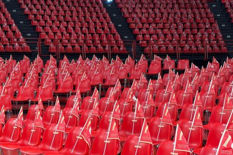 Ολυμπιακός: Γέμισε με ερυθρόλευκα επετειακά σημαιάκια το ΣΕΦ (pics)