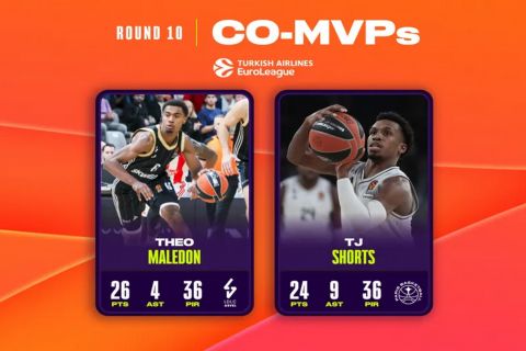 Στα… δύο μοιράστηκε το βραβείο του πολυτιμότερου παίκτη της 10ης αγωνιστικής της Euroleague.