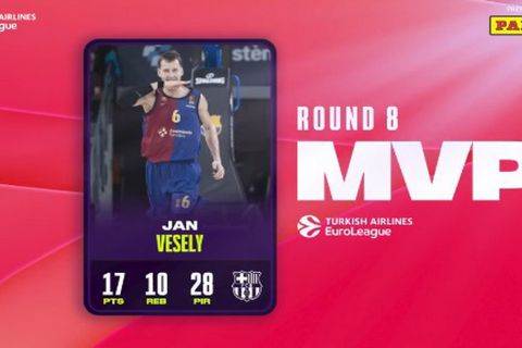Στα χέρια του Γιαν Βέσελι κατέληξε το βραβείο του πολυτιμότερου παίκτη της 8ης αγωνιστικής της Euroleague.
